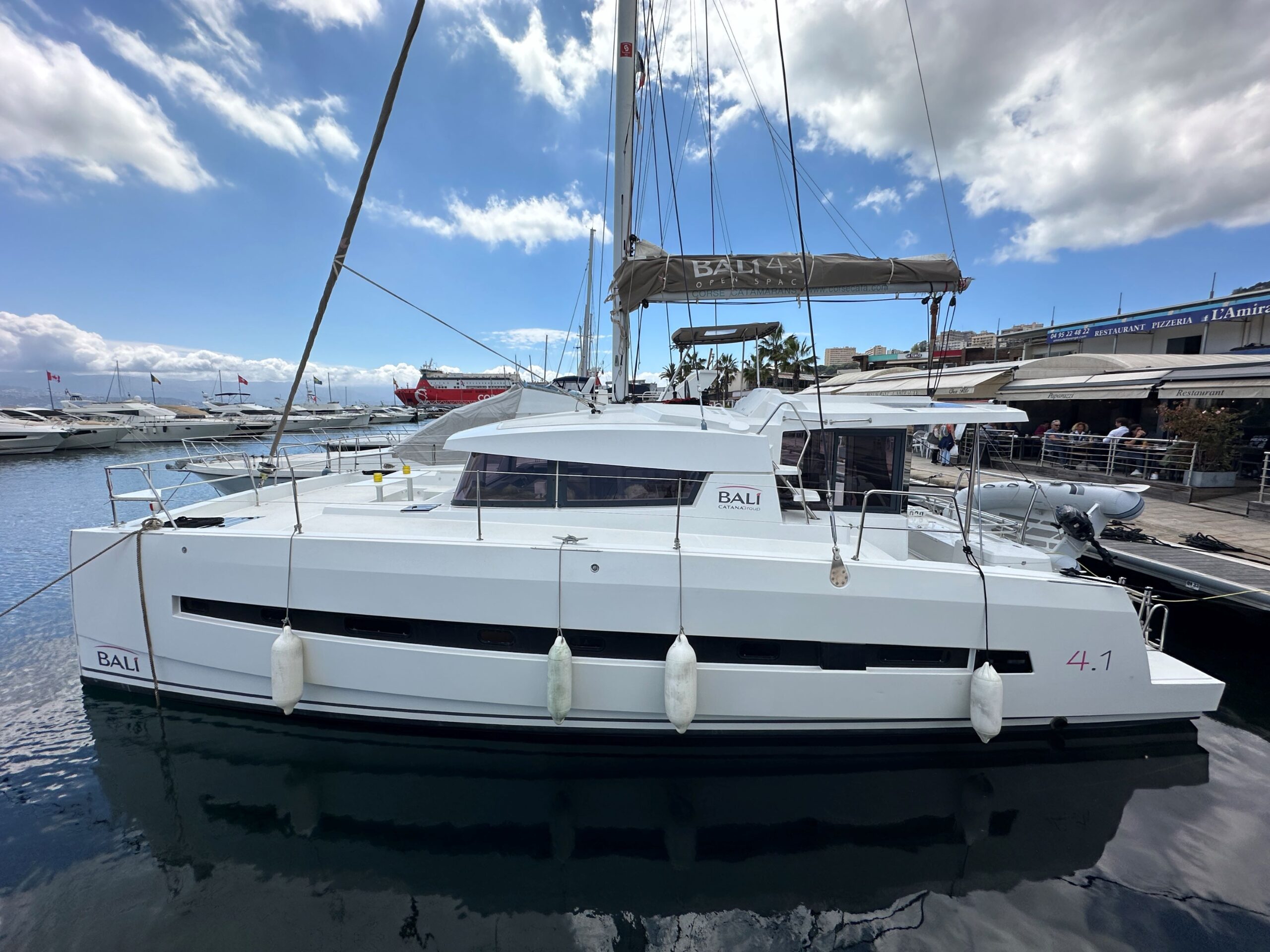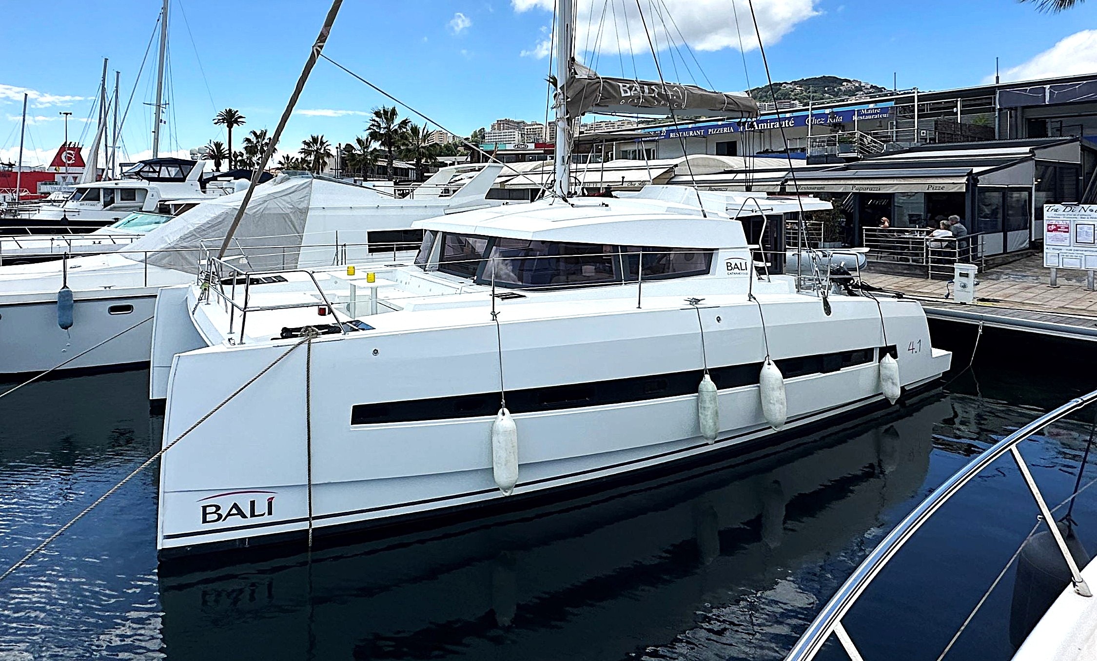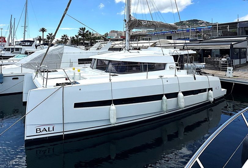 Avec sa taille relativement compacte (12,37m), le Bali 4.1 offre un espace intérieur étonnamment généreux grâce à son concept unique. Le cockpit avant, la vitre frontale escamotable et le carré cockpit modulable créent une ambiance à la fois spacieuse et conviviale, et agrandit la zone de vie aux saisons intermédiaires. TVA récupérable (nous consulter).