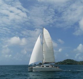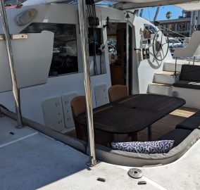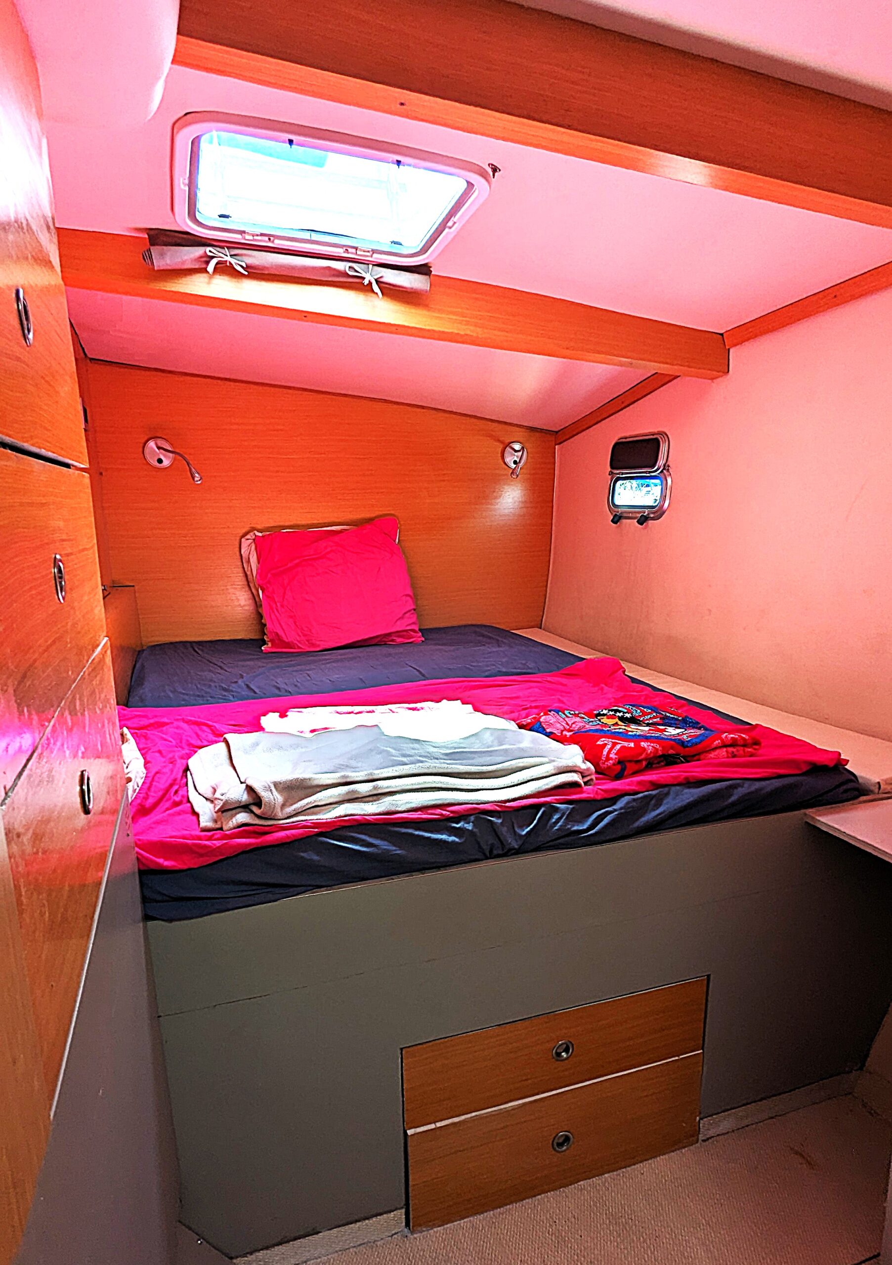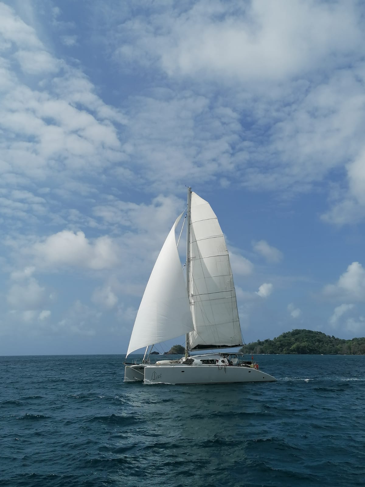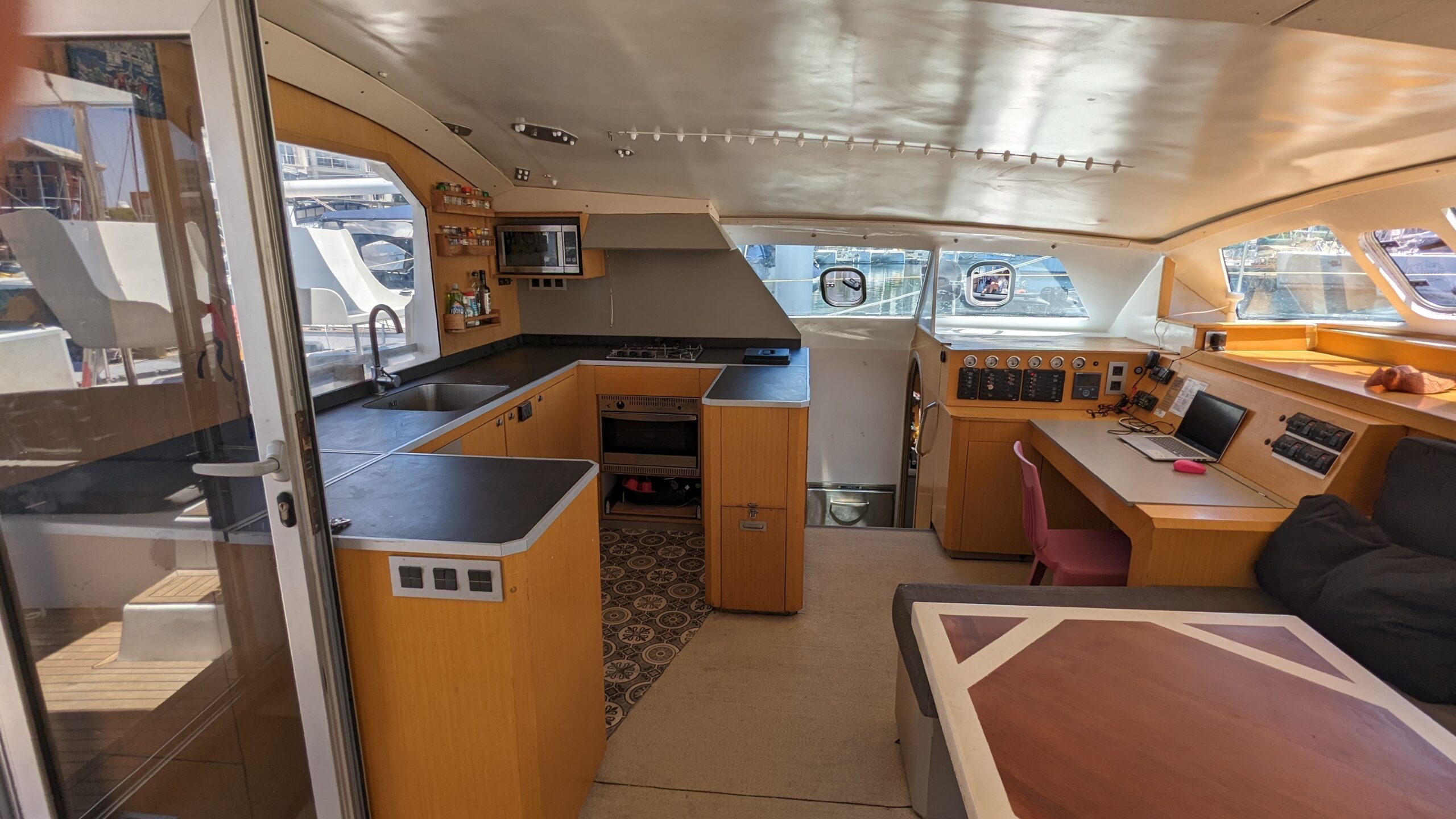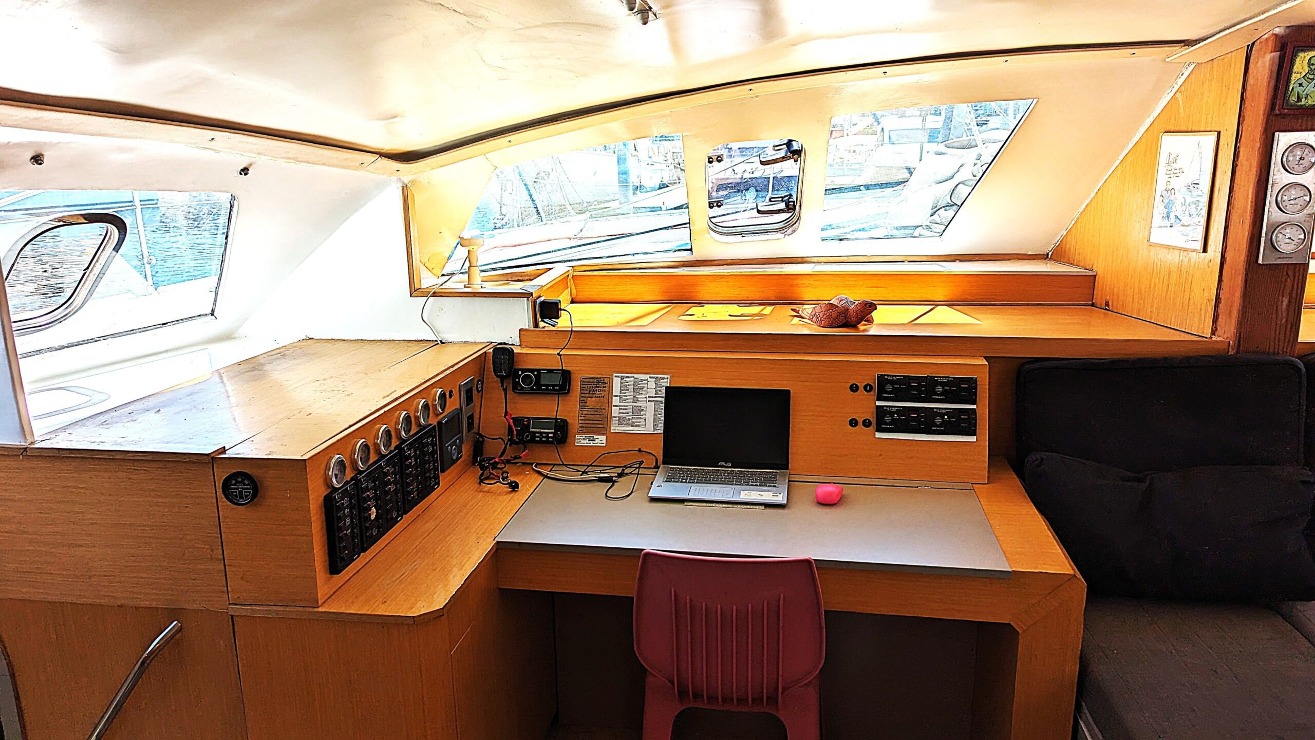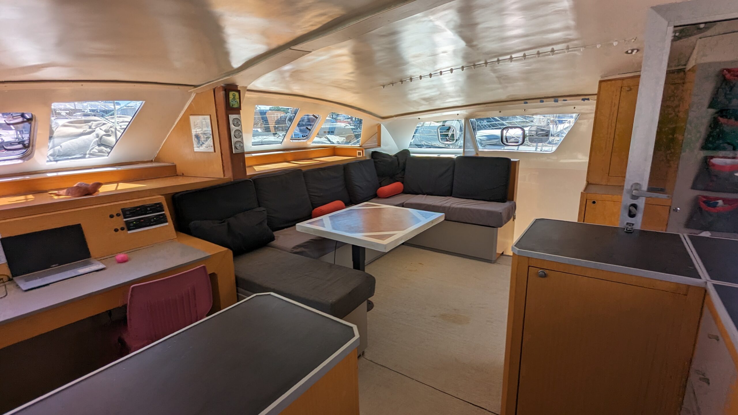 Un rare plan Lerouge de 4 cabines construit par un chantier professionnel. De retour d'un tour du monde de 3 ans effectué en famille, le voila disponible pour une nouvelle aventure ! Tout l'esprit des plan Lerouge se retrouve dans ce bateau  : simplicité (pas de dérives) , moyennes de 200 à 220 miles par jour sans risque, belle habitabilité pour un multicoque léger.