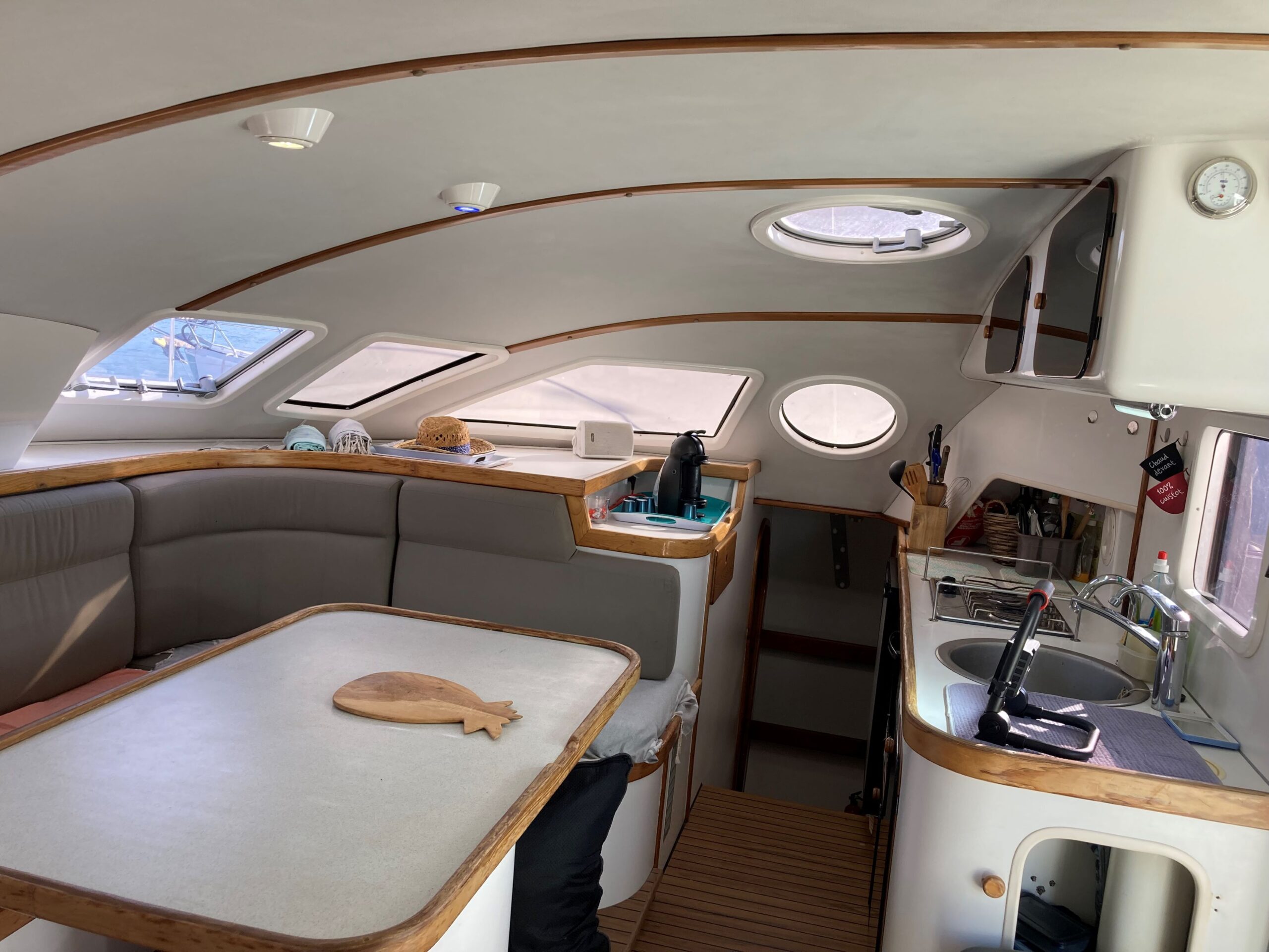 Depuis 2017, il a bénéficié d'un renouvellement complet de tous les postes : gréement, enrouleur, voiles, moteurs, annexe, electricité,